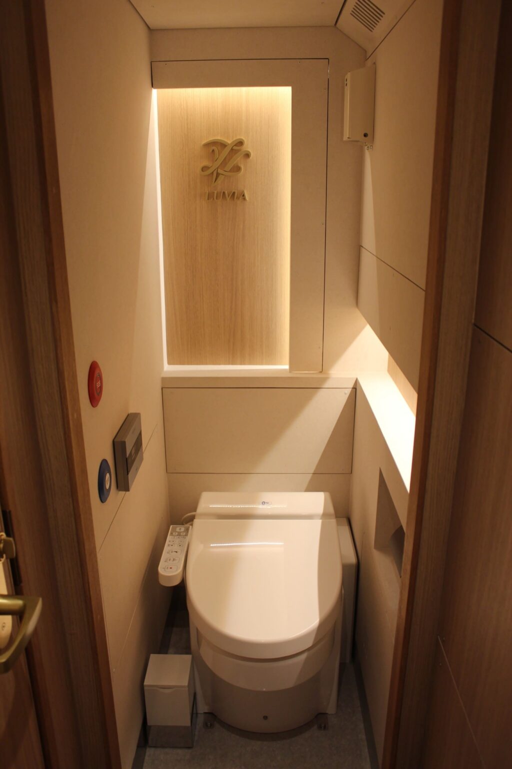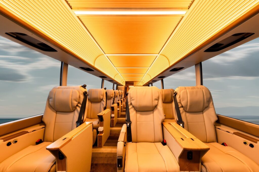 車内は一席あたりのスペースにゆとりを持たせた計18席のみ(シート間隔1,050mm)。